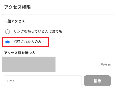 特に、取引先名や開発中のプロジェクト名など、外部に知られたくない内容を扱う場合は要注意。「気づかないうちに情報が共有されていた」という事態を防ぐためにも、利用を始めるタイミングでアクセス権限の設定を「招待された人のみ」に切り替えておくのがおすすめです。