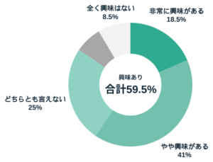 - 特に18.5%は「非常に興味がある」と強い関心を示しており、課題の根深さと解決策への渇望がうかがえる。
